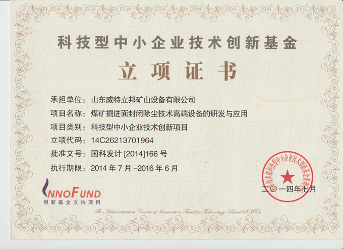 科技型中小企業(yè)技術(shù)創(chuàng)新基金立項(xiàng)證書